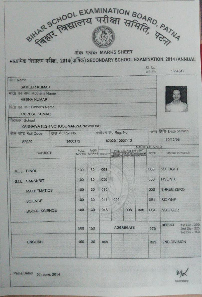 | Exam | Full Marks | Pass Marks | Marks Obtained |