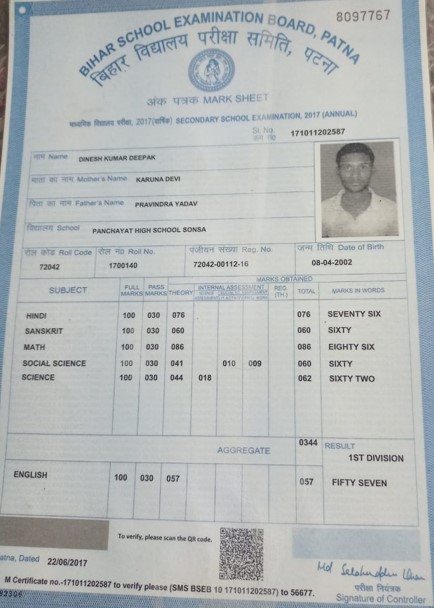 | Exam | Full Marks | Pass Marks | Marks Obtained |
