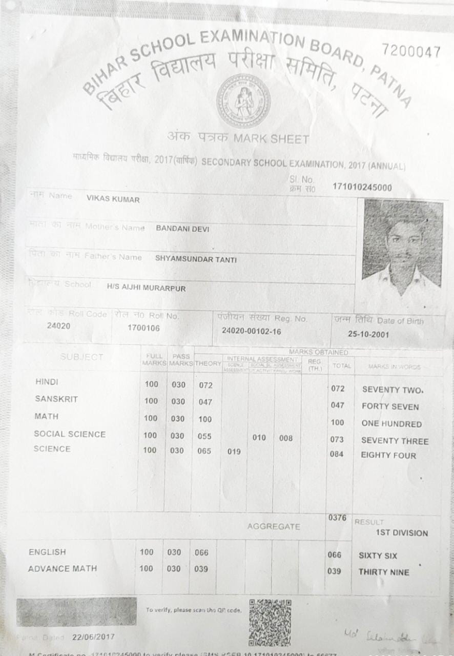 | Exam | Full Marks | Pass Marks | Marks Obtained |