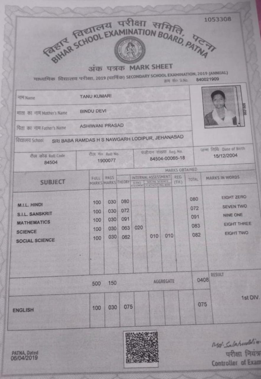 | Exam | Full Marks | Pass Marks | Marks Obtained |