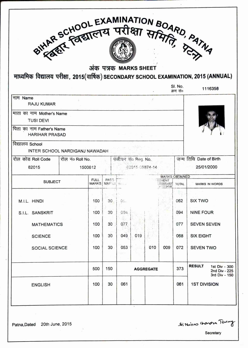 | Exam | Full Marks | Pass Marks | Marks Obtained |