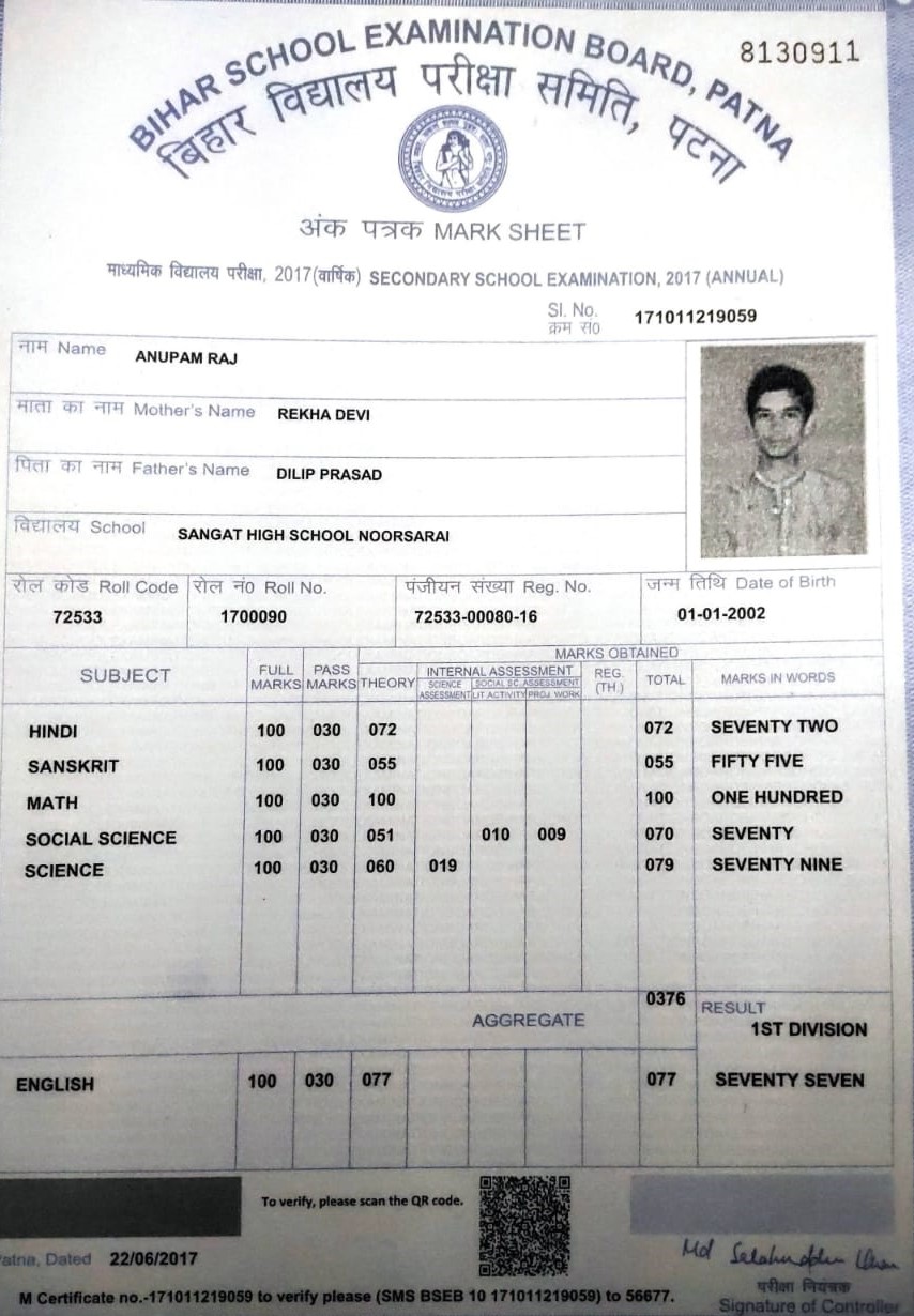 | Exam | Full Marks | Pass Marks | Marks Obtained |