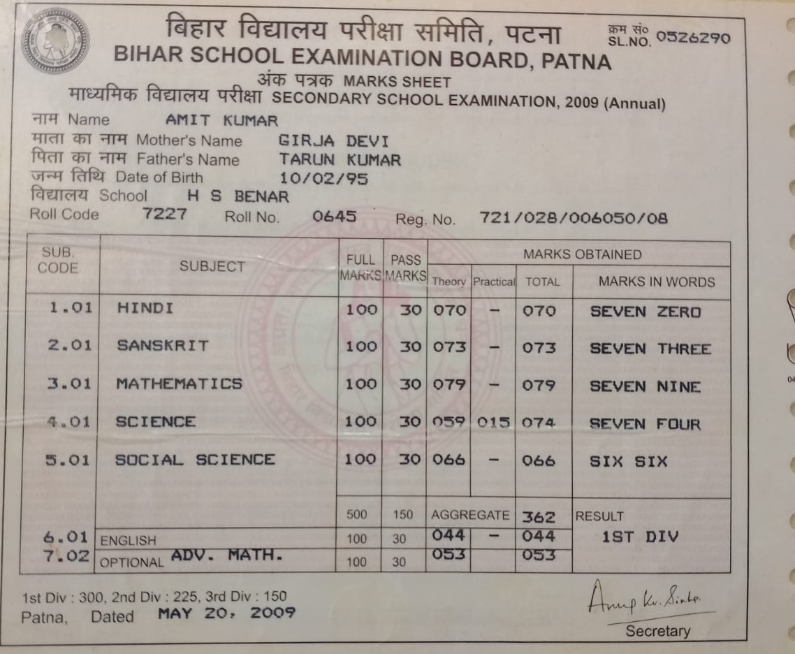 | Exam | Full Marks | Pass Marks | Marks Obtained |