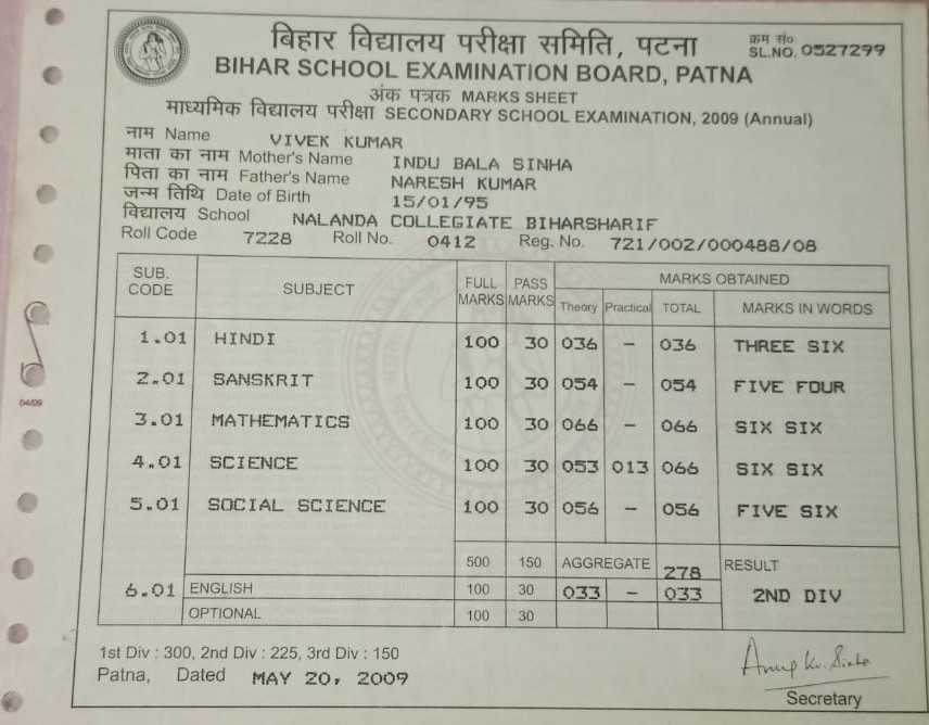 | Exam | Full Marks | Pass Marks | Marks Obtained |