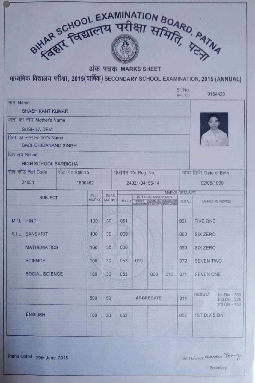 | Exam | Full Marks | Pass Marks | Marks Obtained |