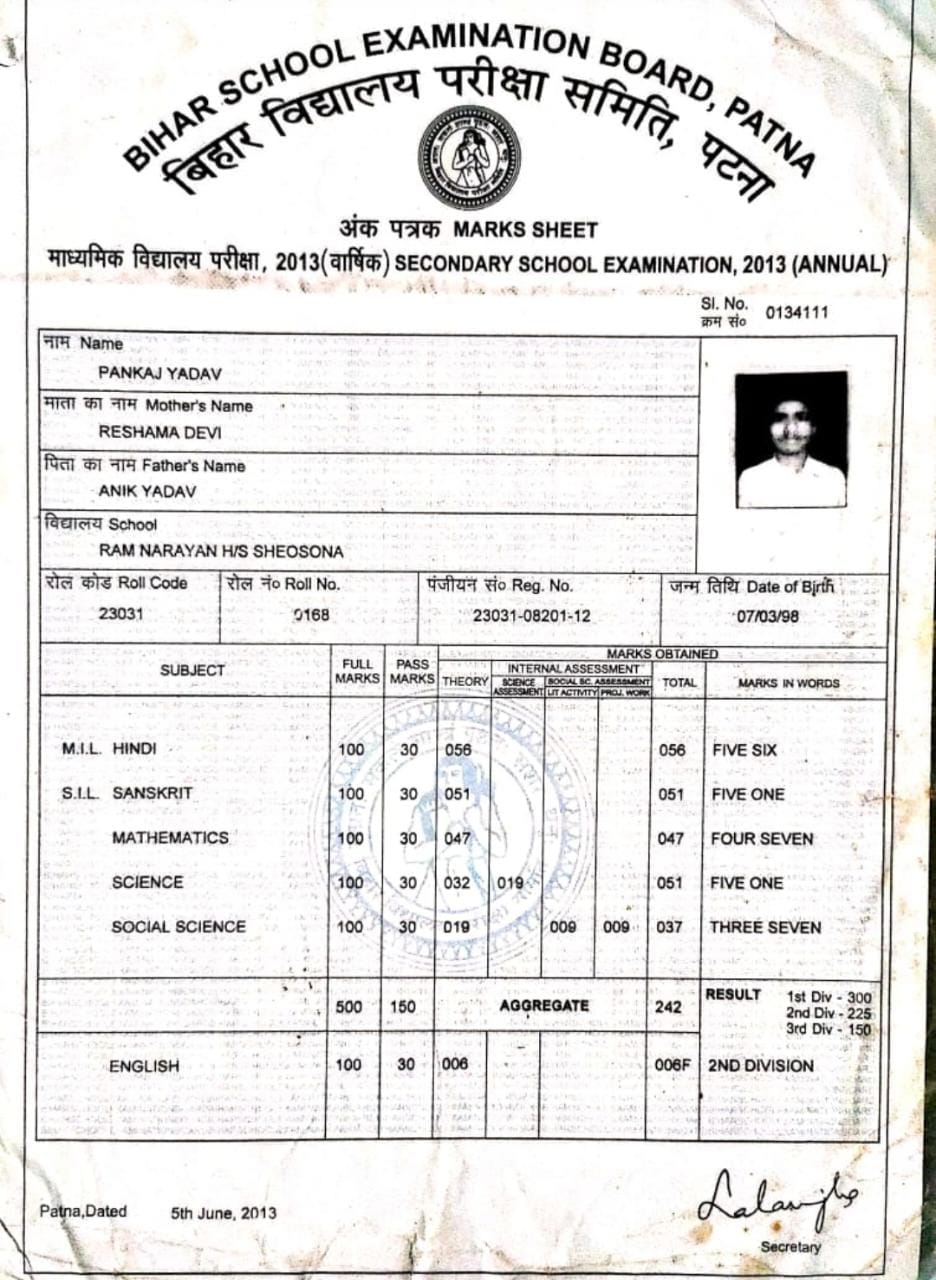 | Exam | Full Marks | Pass Marks | Marks Obtained |