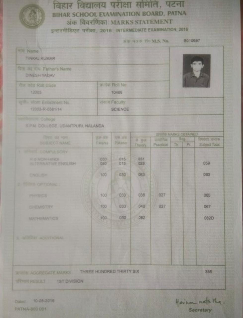 | : | Matric | |