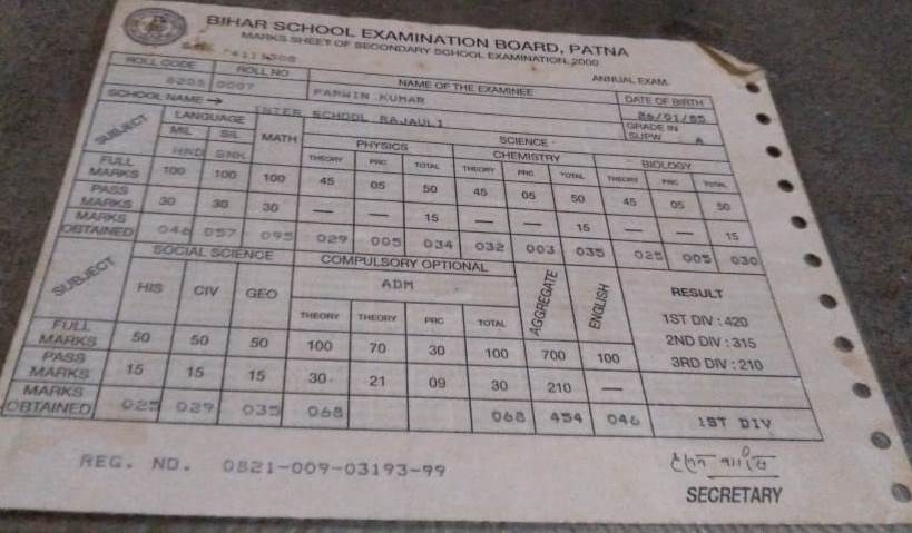 | Exam | Full Marks | Pass Marks | Marks Obtained |