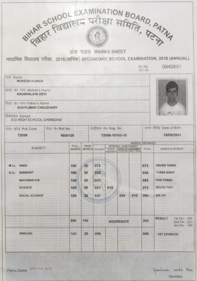 | Exam | Full Marks | Pass Marks | Marks Obtained |