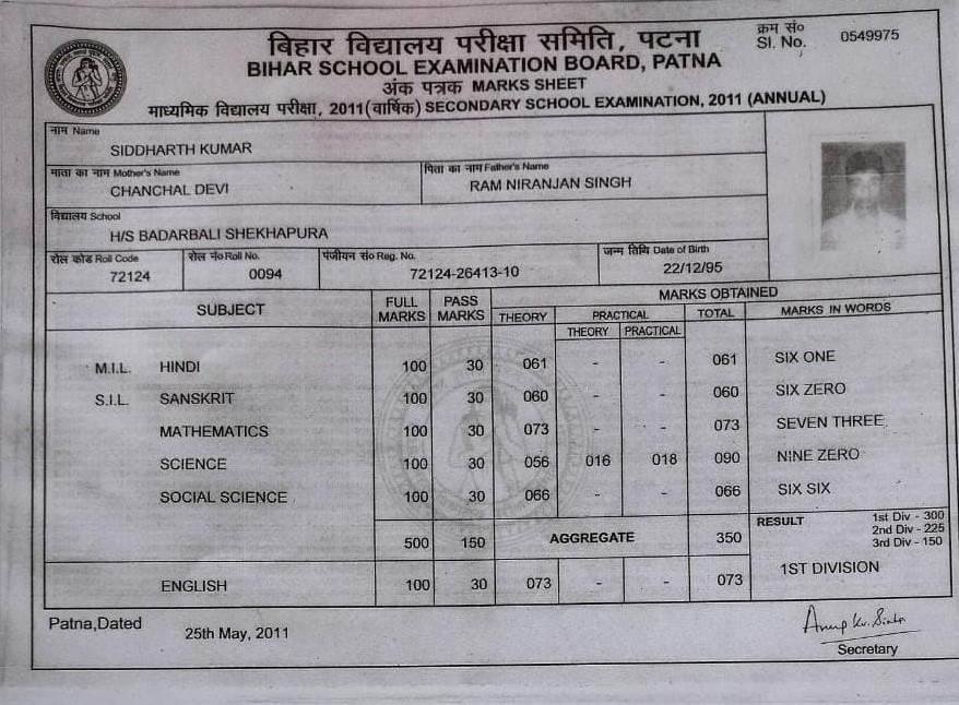 | Exam | Full Marks | Pass Marks | Marks Obtained |