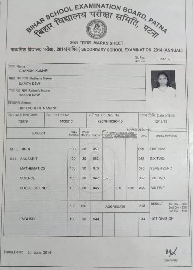 | Exam | Full Marks | Pass Marks | Marks Obtained |