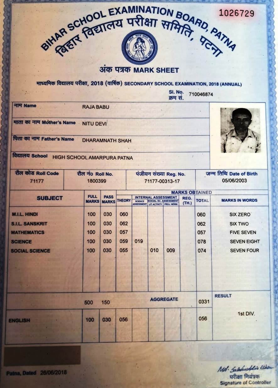 | Exam | Full Marks | Pass Marks | Marks Obtained |