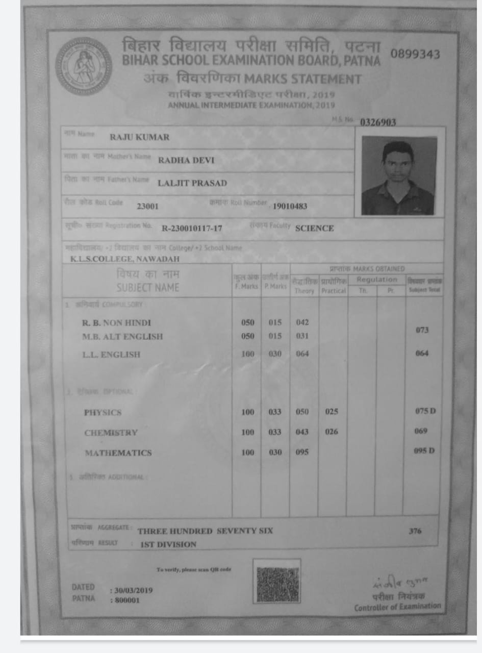 | Exam | Full Marks | Pass Marks | Marks Obtained |