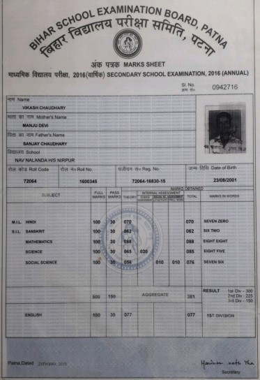 | Exam | Full Marks | Pass Marks | Marks Obtained |