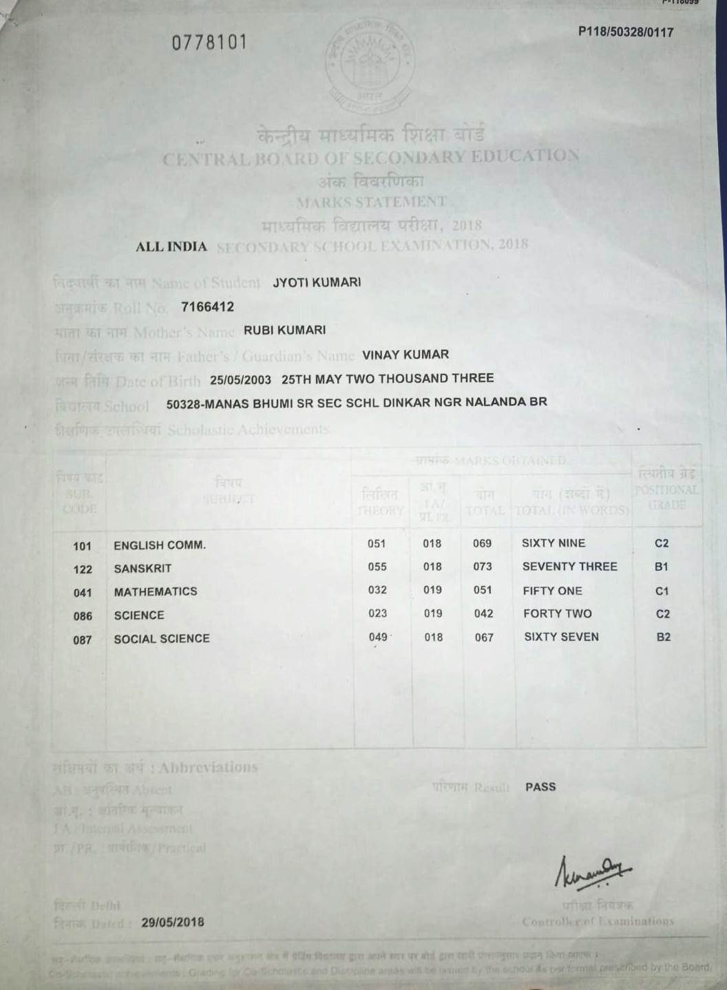 | Exam | Full Marks | Pass Marks | Marks Obtained |