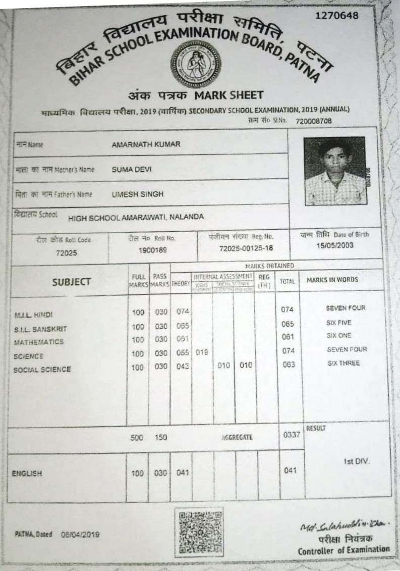 | Exam | Full Marks | Pass Marks | Marks Obtained |