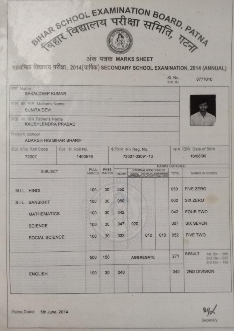| Exam | Full Marks | Pass Marks | Marks Obtained |
