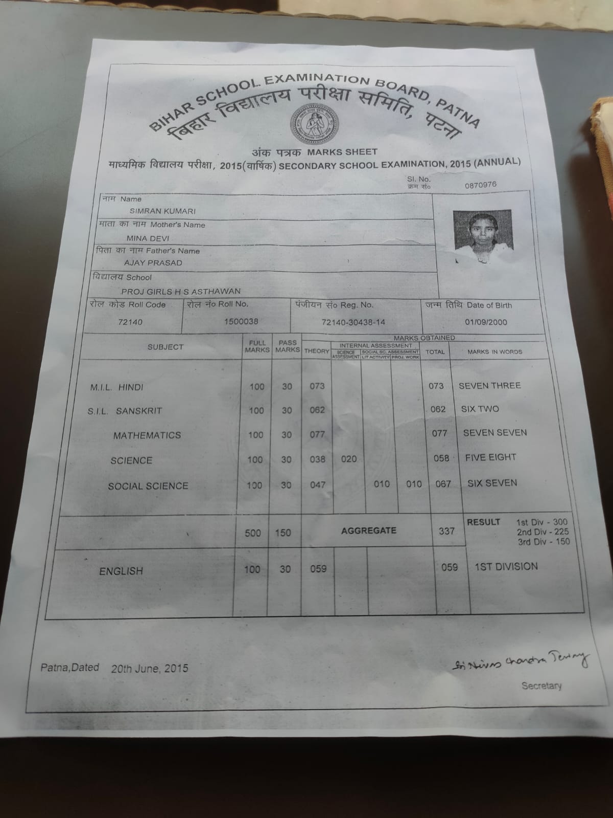 | Exam | Full Marks | Pass Marks | Marks Obtained |