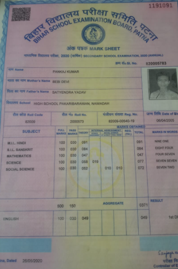 | Exam | Full Marks | Pass Marks | Marks Obtained |
