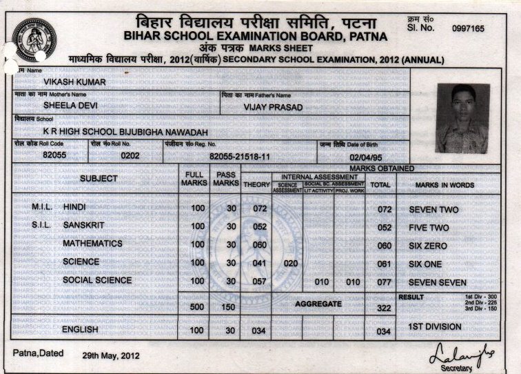 | Exam | Full Marks | Pass Marks | Marks Obtained |