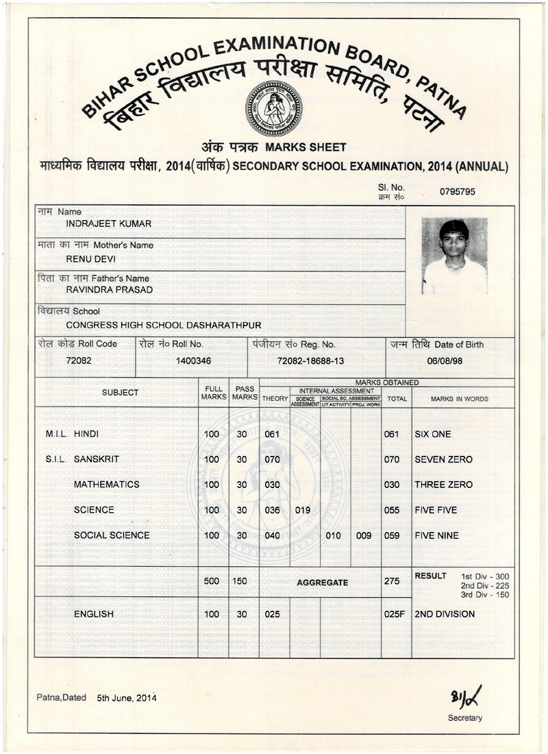 | Exam | Full Marks | Pass Marks | Marks Obtained |