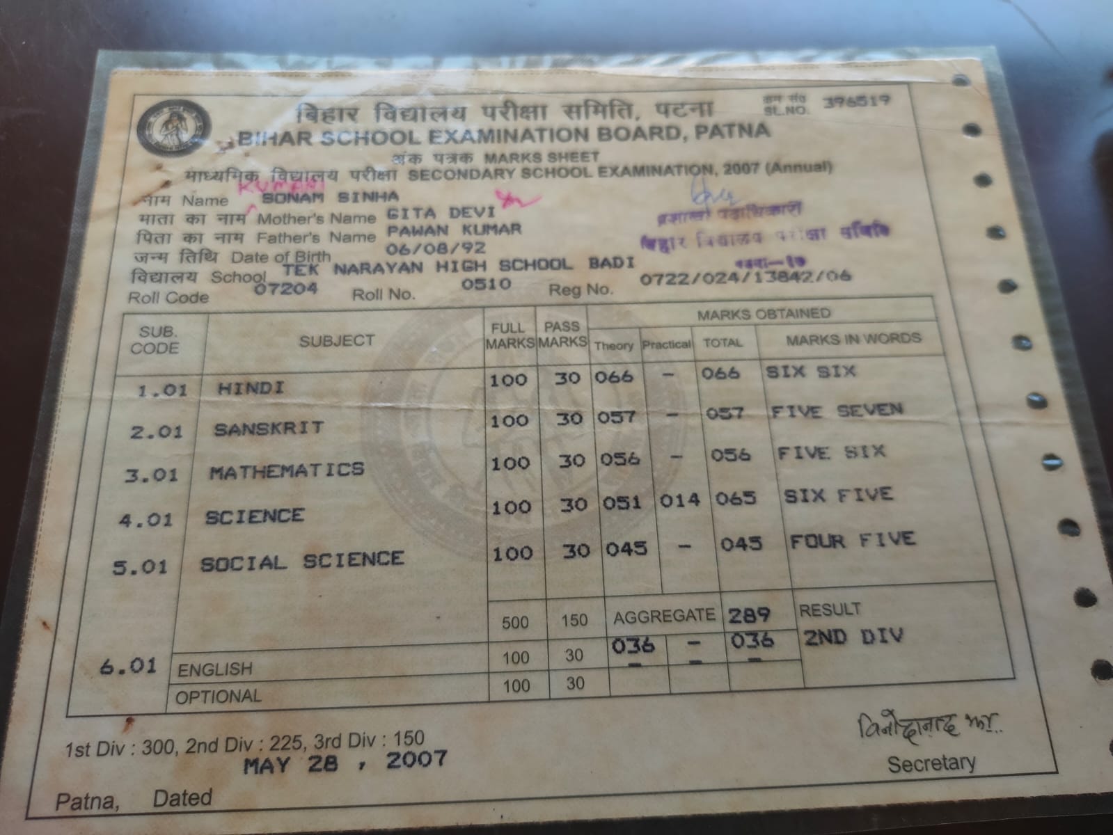 | Exam | Full Marks | Pass Marks | Marks Obtained |