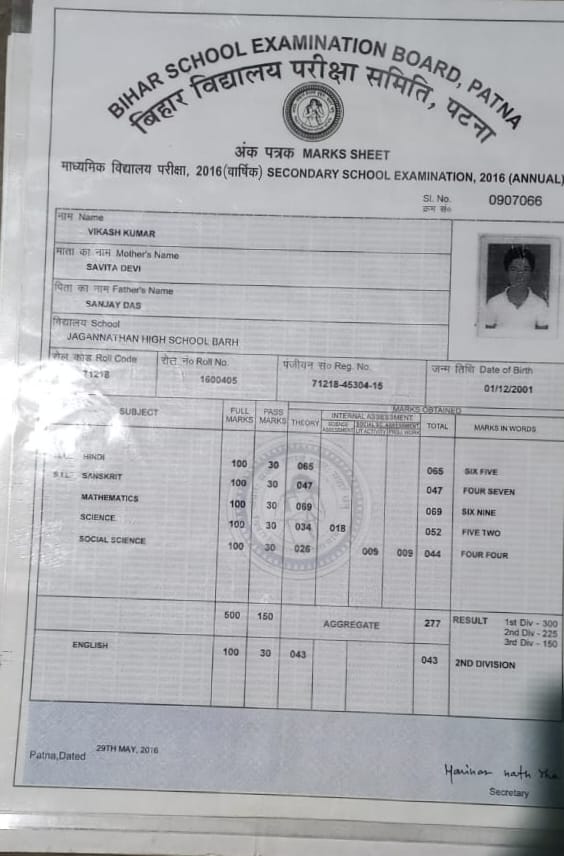 | Exam | Full Marks | Pass Marks | Marks Obtained |