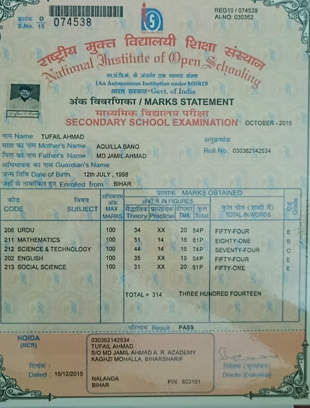| Exam | Full Marks | Pass Marks | Marks Obtained |