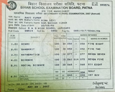 | Exam | Full Marks | Pass Marks | Marks Obtained |