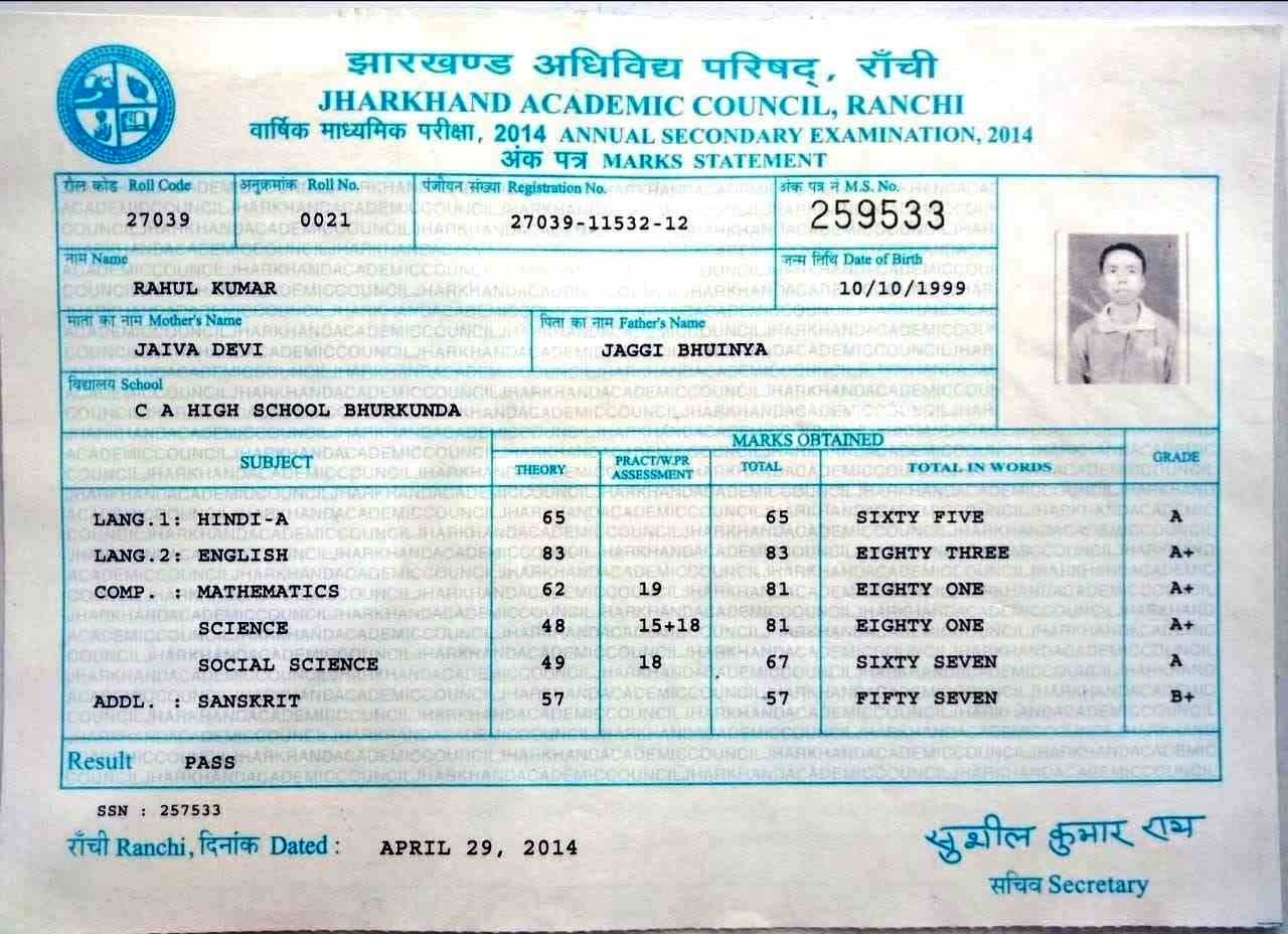 | Exam | Full Marks | Pass Marks | Marks Obtained |