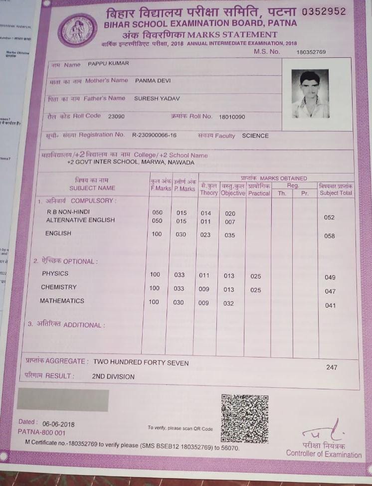 | Exam | Full Marks | Pass Marks | Marks Obtained |
