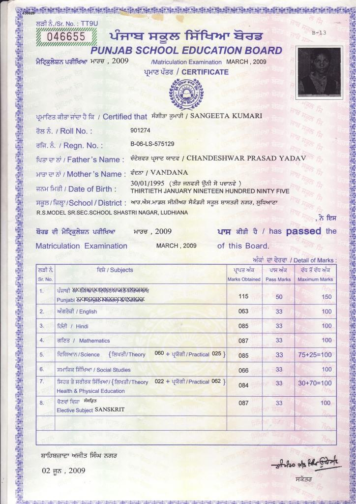 | Exam | Full Marks | Pass Marks | Marks Obtained |