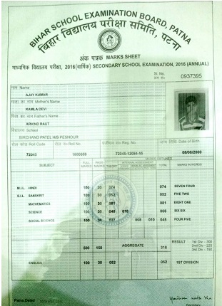 | Exam | Full Marks | Pass Marks | Marks Obtained |