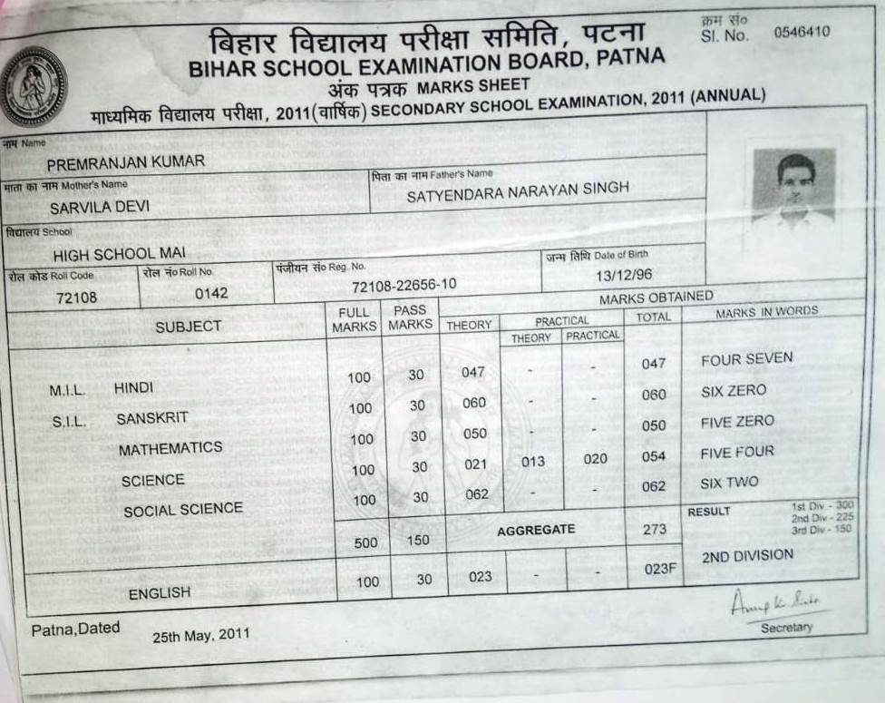 | Exam | Full Marks | Pass Marks | Marks Obtained |