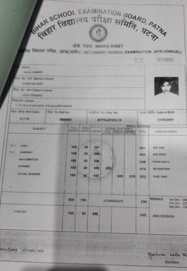| Exam | Full Marks | Pass Marks | Marks Obtained |