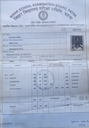 | Exam | Full Marks | Pass Marks | Marks Obtained |