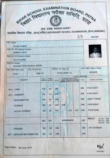 | Exam | Full Marks | Pass Marks | Marks Obtained |