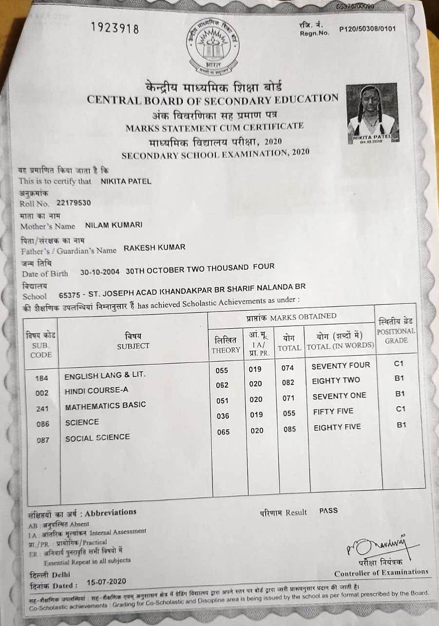 | Exam | Full Marks | Pass Marks | Marks Obtained |