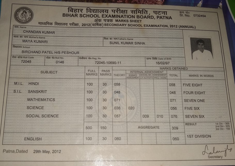 | Exam | Full Marks | Pass Marks | Marks Obtained |