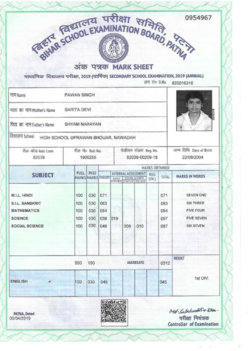| Exam | Full Marks | Pass Marks | Marks Obtained |