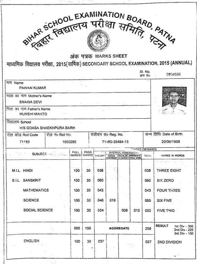 | Exam | Full Marks | Pass Marks | Marks Obtained |