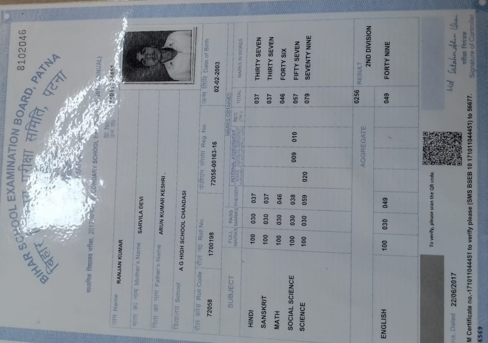| Exam | Full Marks | Pass Marks | Marks Obtained |