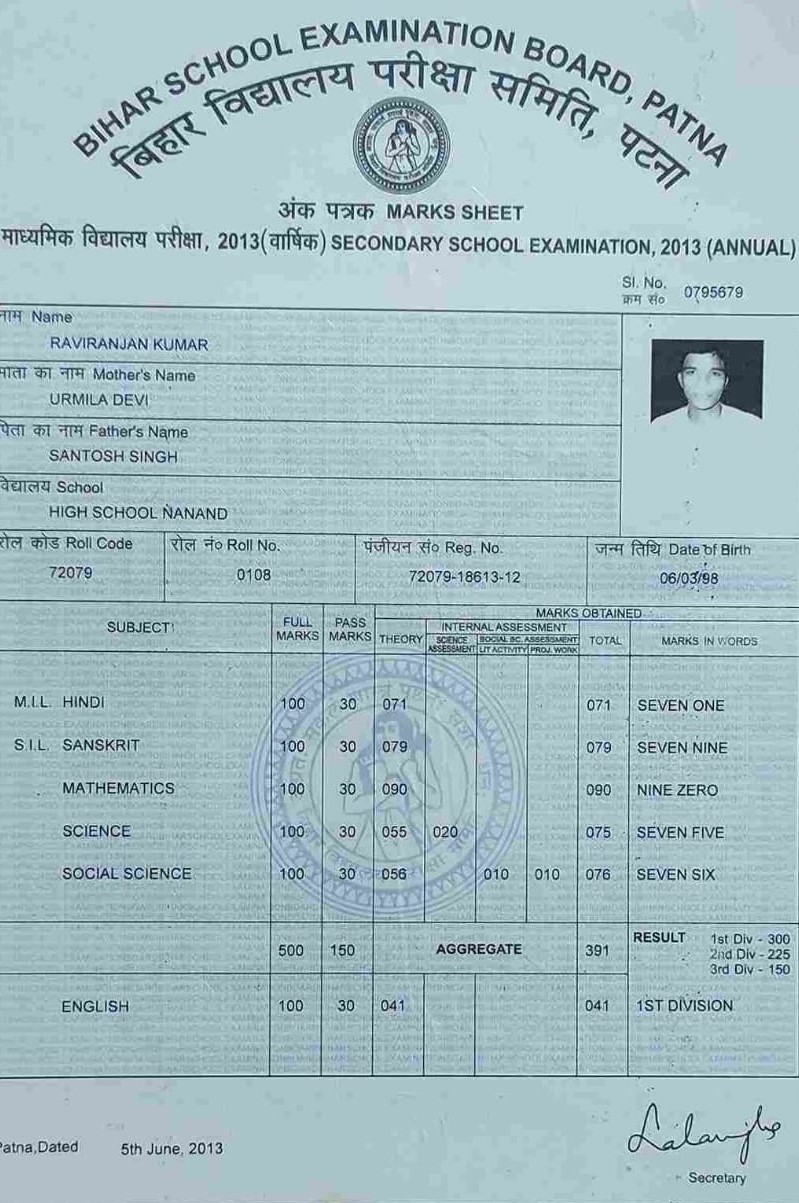 | Exam | Full Marks | Pass Marks | Marks Obtained |
