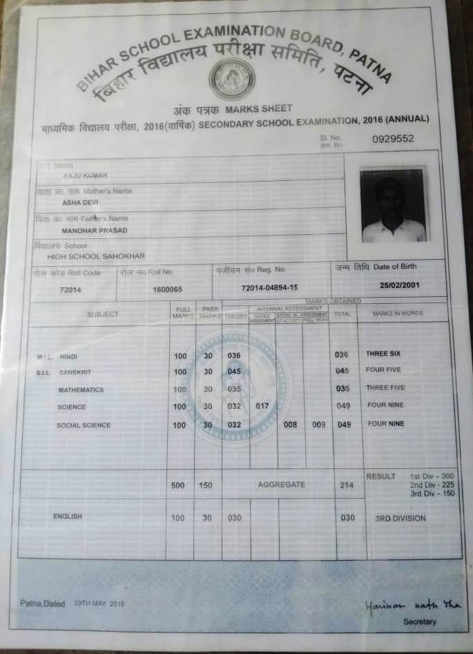| Exam | Full Marks | Pass Marks | Marks Obtained |