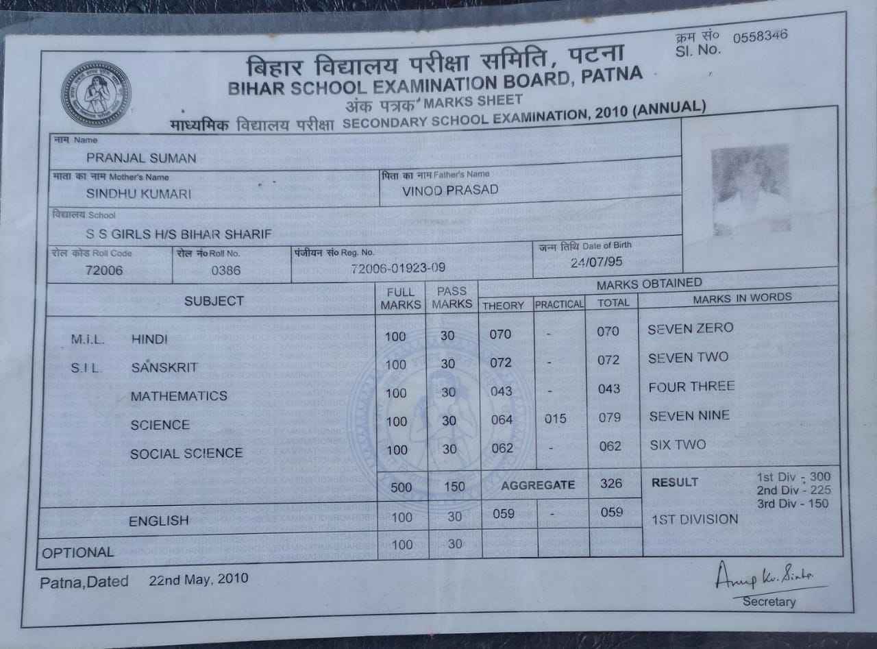 | Exam | Full Marks | Pass Marks | Marks Obtained |