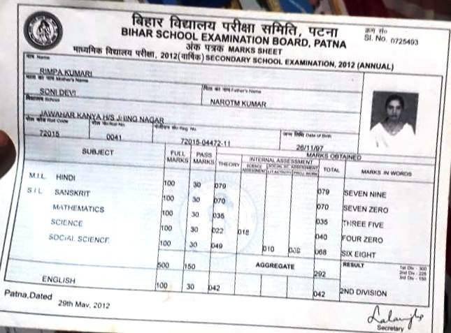 | Exam | Full Marks | Pass Marks | Marks Obtained |