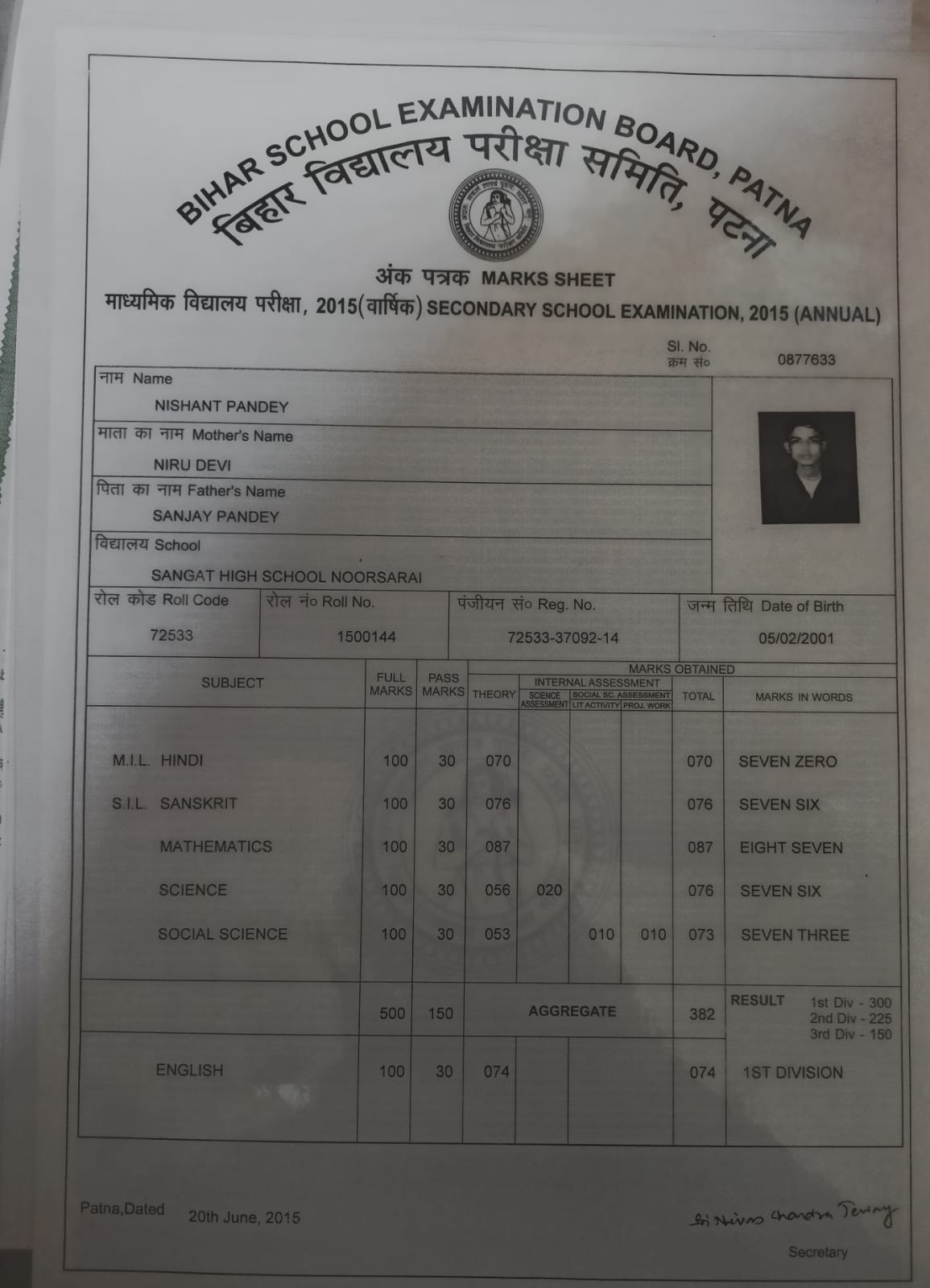 | Exam | Full Marks | Pass Marks | Marks Obtained |