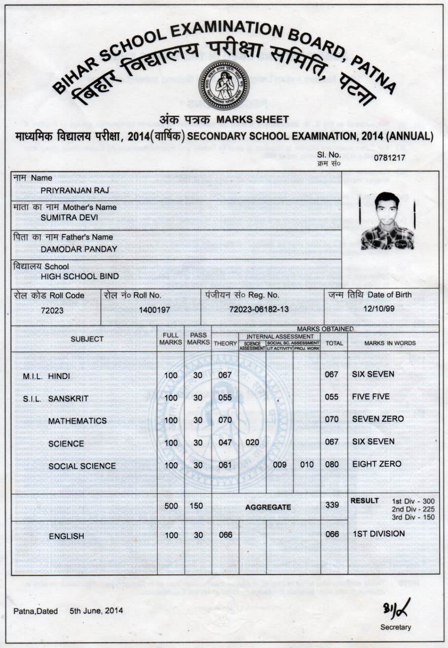 | Exam | Full Marks | Pass Marks | Marks Obtained |