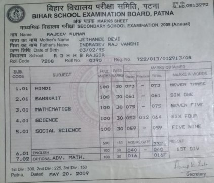 | Exam | Full Marks | Pass Marks | Marks Obtained |