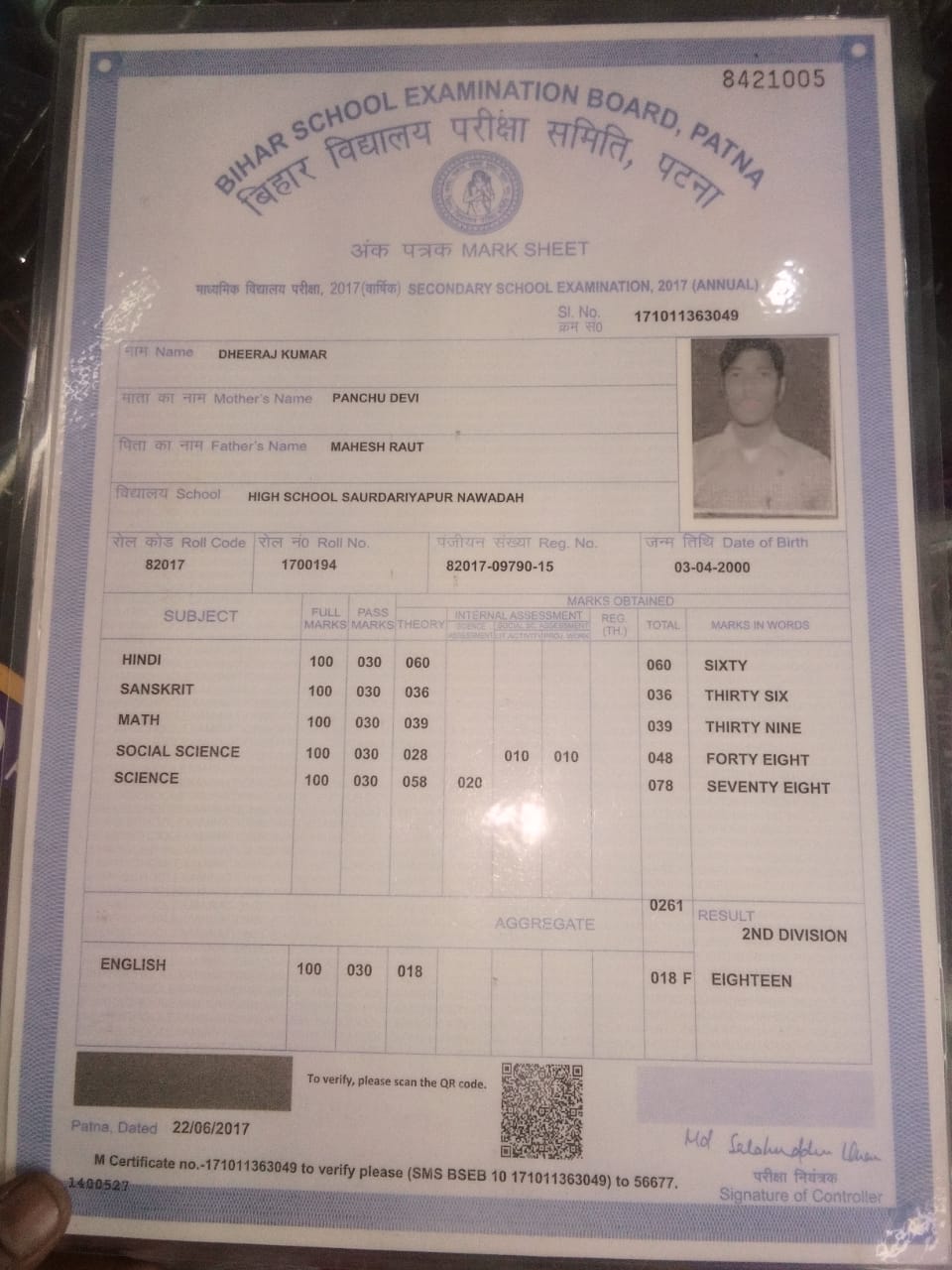 | Exam | Full Marks | Pass Marks | Marks Obtained |
